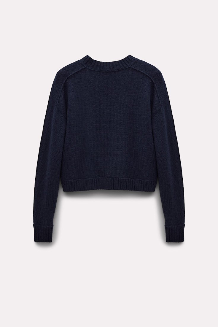 Crafted in mix of virgin merino wool and cashmere, the soft sweater has a loose fit and cropped length. Double seams at the shoulders highlight the raglan sleeves, which finish with ribbed cuffs.