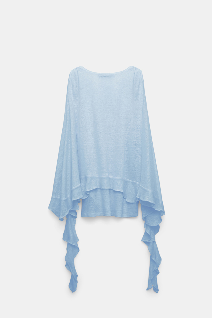 Easy breezy in hemp: The round neck hemp tank top has long draped ruffles on the sides and a flared A-line drape.