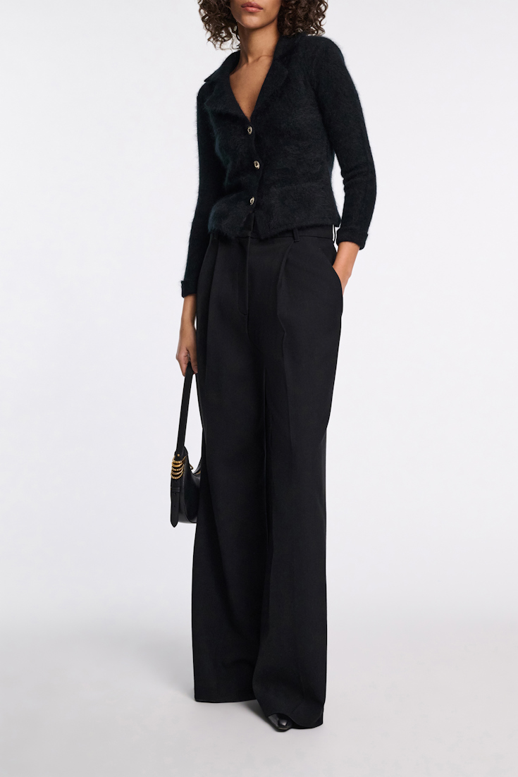 Soft, softer, the softest: Finished with our special new fluffy knit wash, the blazer-style cardigan is extra soft and has a tactile feel. The cropped style has gold-tone buttons and shoulder pads. .