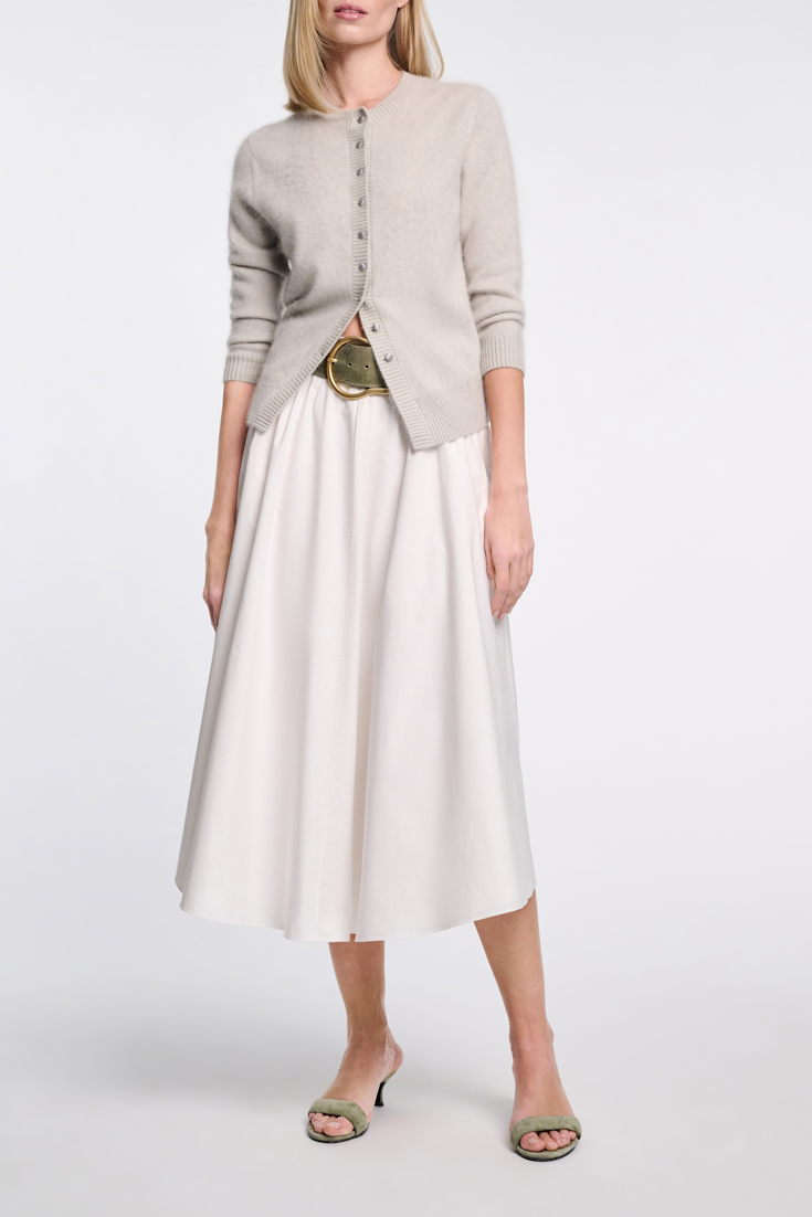 The 6 cm suede belt has a waxed finish and curved shape.