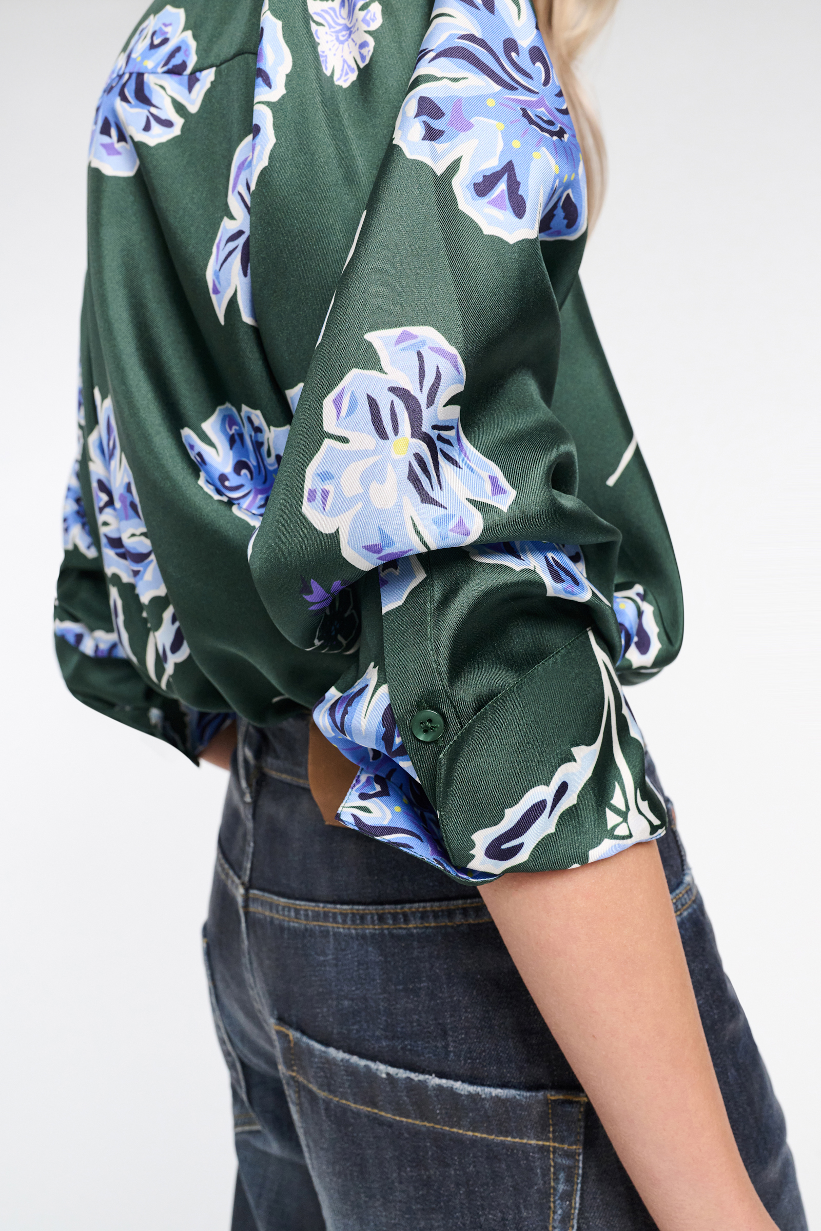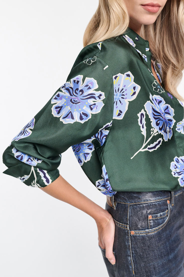 Get lost amongst the flowers...The silk twill blouse is covered with our signature floral print. The blouse has a relaxed fit.