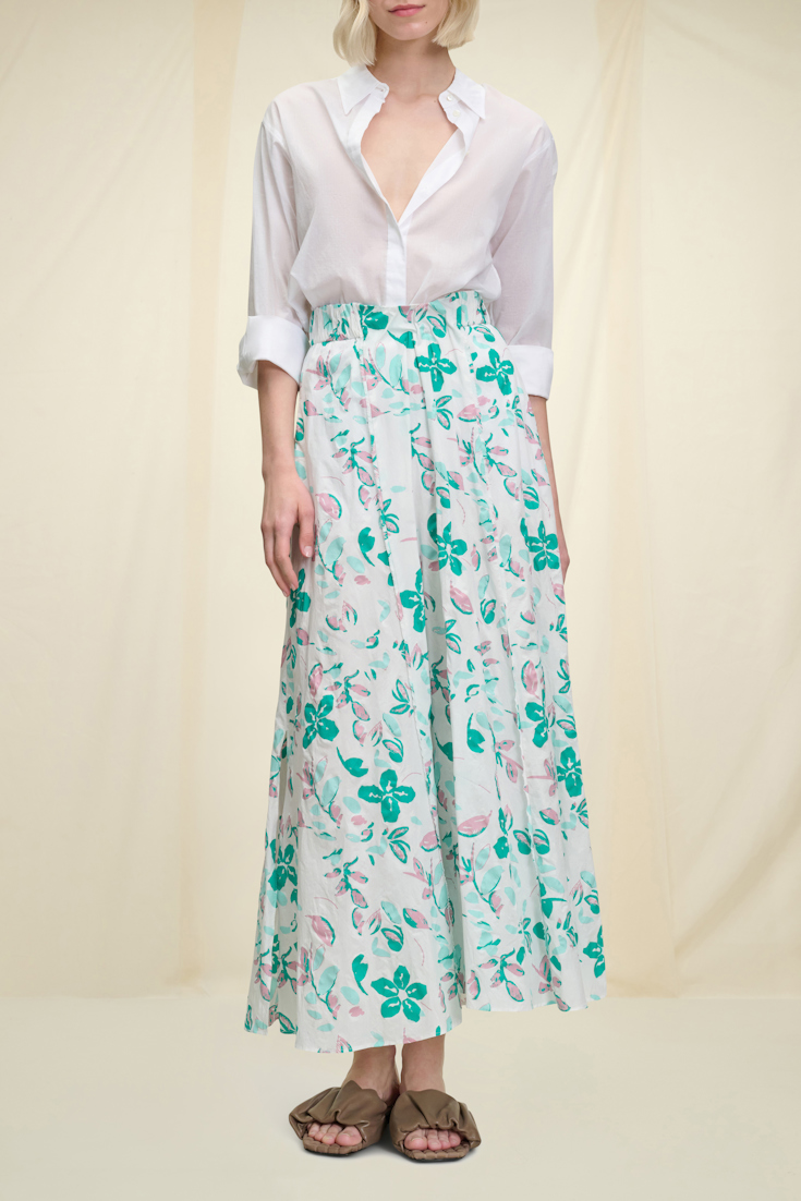 Showcasing one of the collection's most important prints on a seersucker-like fabric, the floral maxi skirt features a full silhouette and flouncy flared hem. We especially love how it looks paired with the matching shell for a dress-like look.