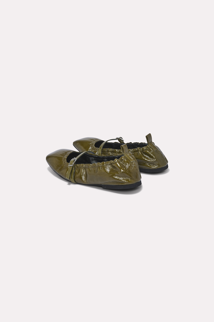 These foldable ballerinas are striking with a square toe and the signature buckle. The shoes have a goat leather lining. An elasticated leather sole ensures comfort during walking.
