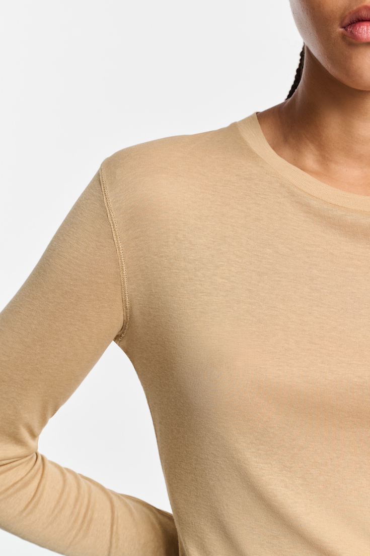 More than just another basic: The fine rib, round neck top has long sleeves and is made from a particularly soft, lyocell-cotton mix.