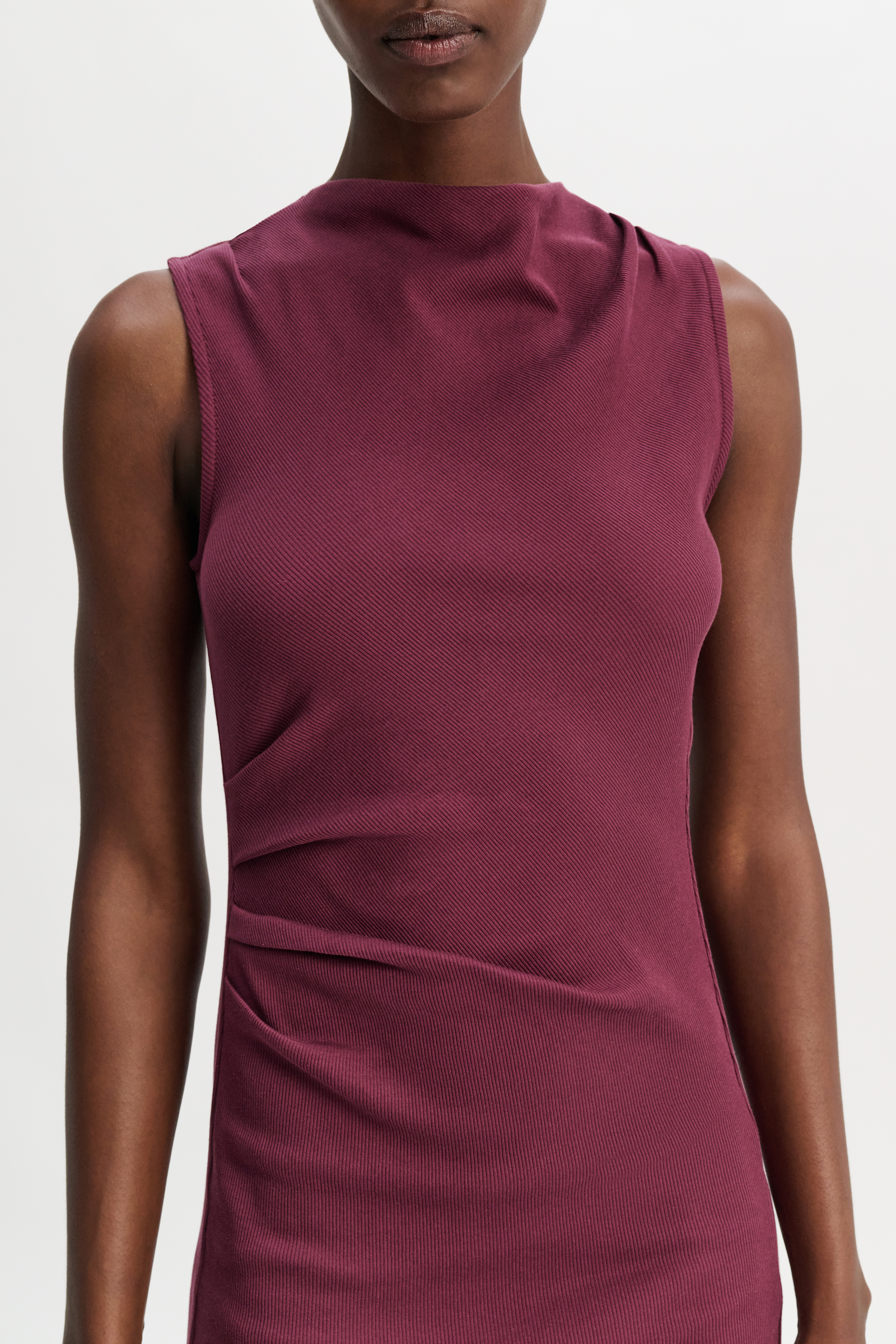 Looking good can be this easy: The fine rib cotton jersey dress has a soft draped neckline and horseshoe charm at the nape. The pullover style has pleated draping on one shoulder and at the waist.