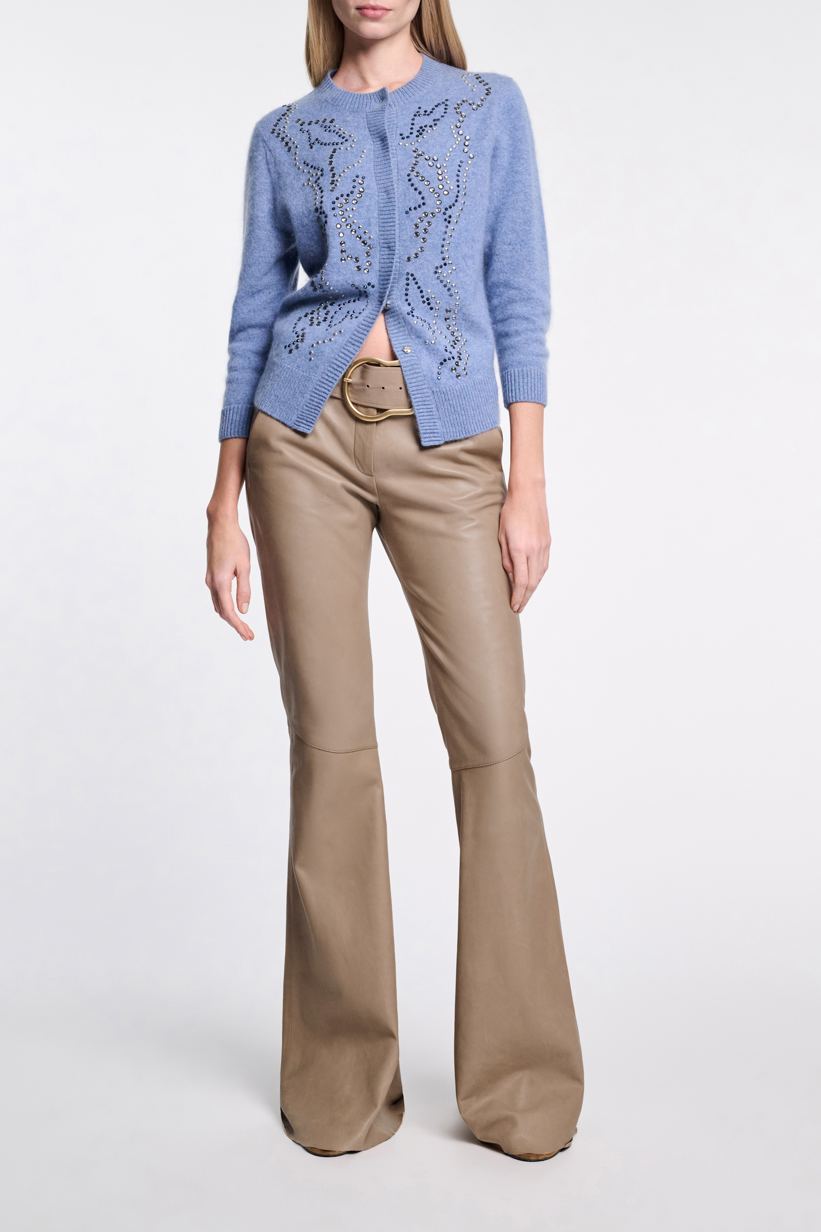 Next level leather: The flared pants have a high waist and mare made from exquisitely soft lambskin.